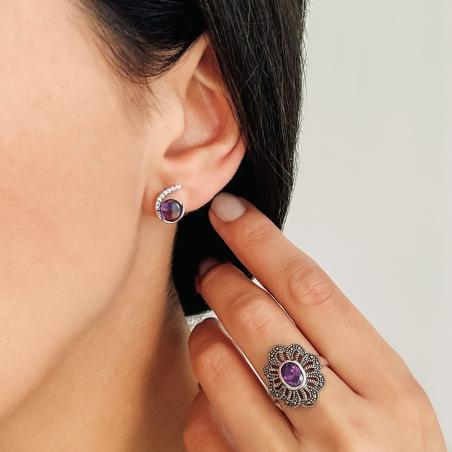Boucles d' oreilles argent amethyste et zirconias