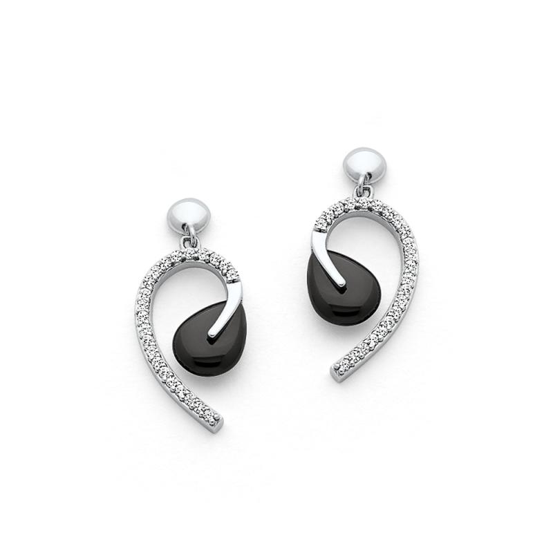 Ces belles boucles d'oreilles en argent et céramique avec zirconias orneront vos oreilles avec classe et discrétion. Elles sont idéales pour parfaire une tenue de soirée. Ces boucles d'oreilles vous valoriseront davantage si vous les associez avec le collier en argent et céramique de la même collection.