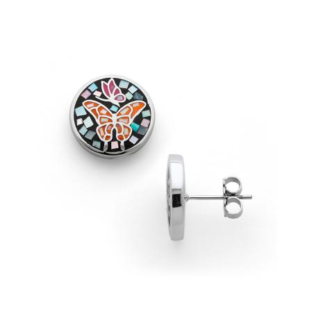 Complétez votre parure Mariposa avec ces boucles d'oreilles puce en acier. Elles encadrent votre visage avec élégance et discrétion et complètent à la perfection toutes vos tenues. Le papillon en émail et nacre ornant les boucles apporte une touche de gaieté et de couleur à votre quotidien.