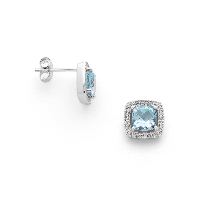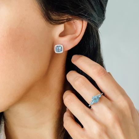 boucles d'oreilles argent avec topaze bleue et zirconias