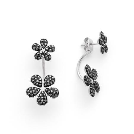 Mettez en valeur votre visage avec ces boucles d'oreilles en acier avec cristal noir de la collection Black Magnolia. La forme en fleur de ces boucles d'oreilles apporte une touche de fantaisie et de gaieté à votre tenue. La sobriété de la couleur du cristal vous permet de les associer à toutes les tenues, même les plus chics.
