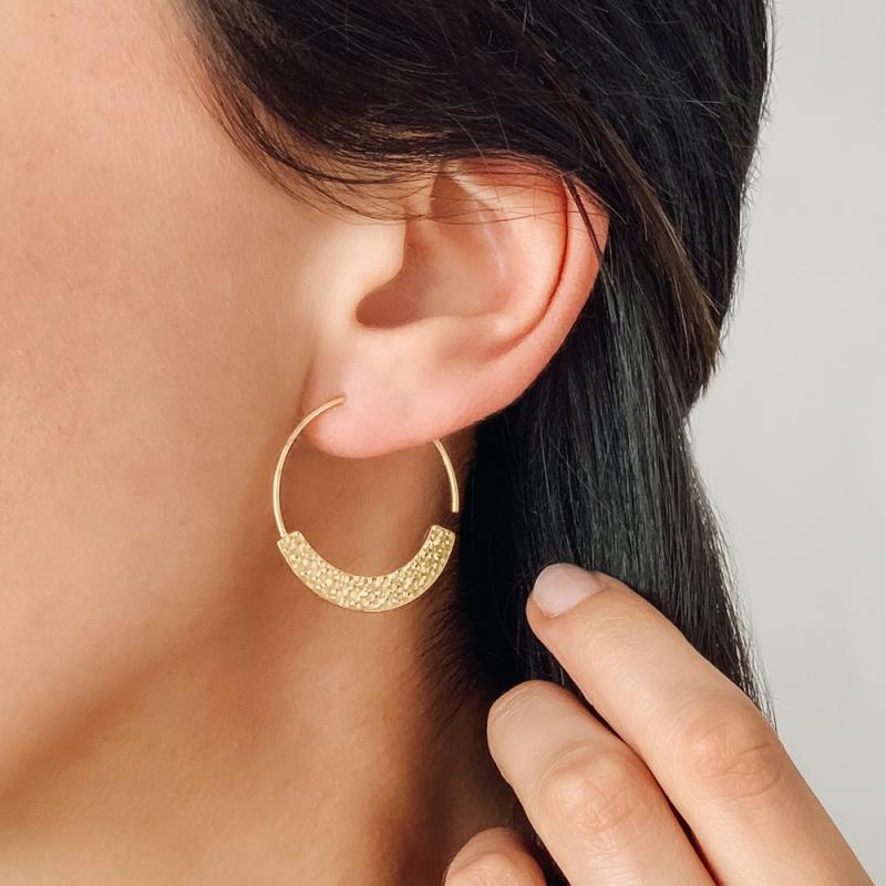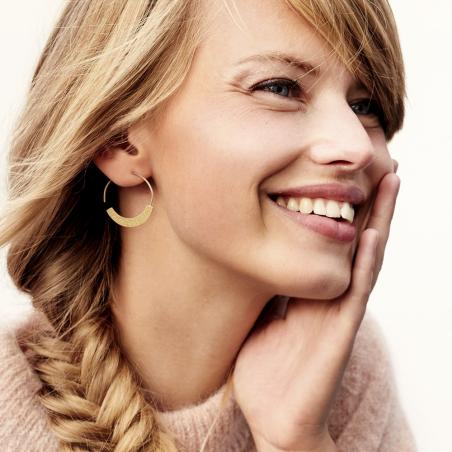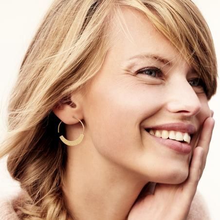 Optez pour ces magnifiques créoles pas comme les autres. En effet les créoles Milos martelées et dorées à l'or jaune cassent les codes des créoles classiques. L'anneau lisse en haut comme pour une paire de créoles traditionnelle se transforme en un anneau plus large et martelé en bas pour un rendu très moderne.