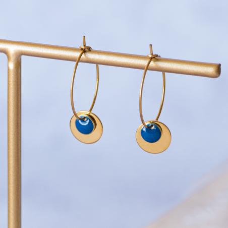 Ces créoles fines en acier jaune avec émail de la collection Myrtille illuminent votre visage en un clin d’œil. Elles rappellent l’été, les lagons turquoise, la mer, la plage et le soleil avec leurs pendants arrondis en émail, LE détail mode qui en met plein la vue. Ces boucles d’oreilles s’adaptent quel que soit votre style.
