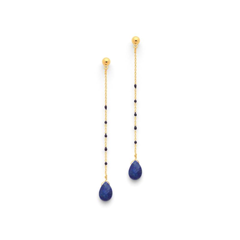 Boucles d'oreilles acier doré avec lapis-lazuli et émail