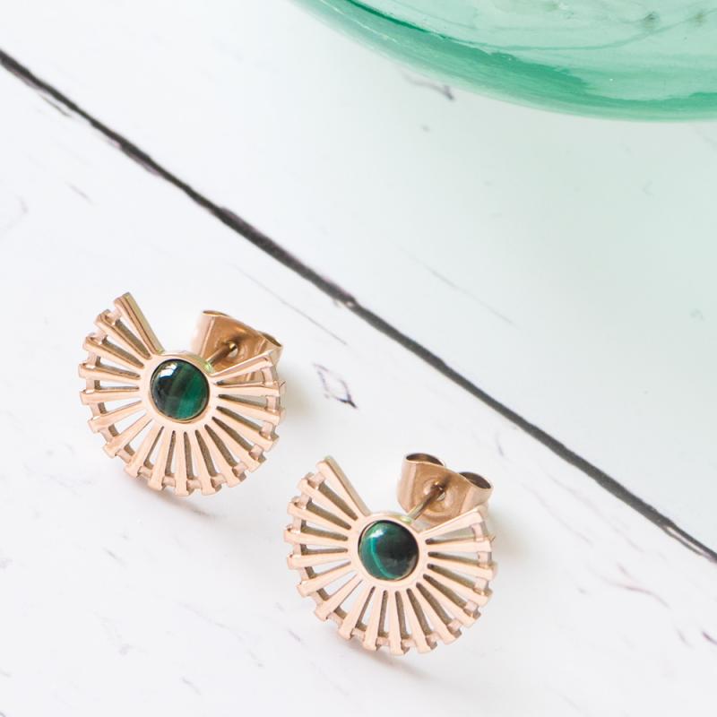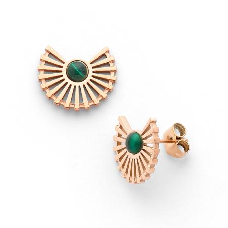 Boucles d'oreilles acier rose avec malachite reconstituée