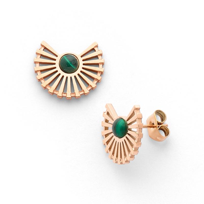Ces puces d'oreilles de belle taille en acier rose et malachite de la collection Diane seront parfaites pour passer l'hiver en toute sérénité et sans morosité. Associez-les avec la bague et le collier de la même collection pour un effet anti déprime garanti !