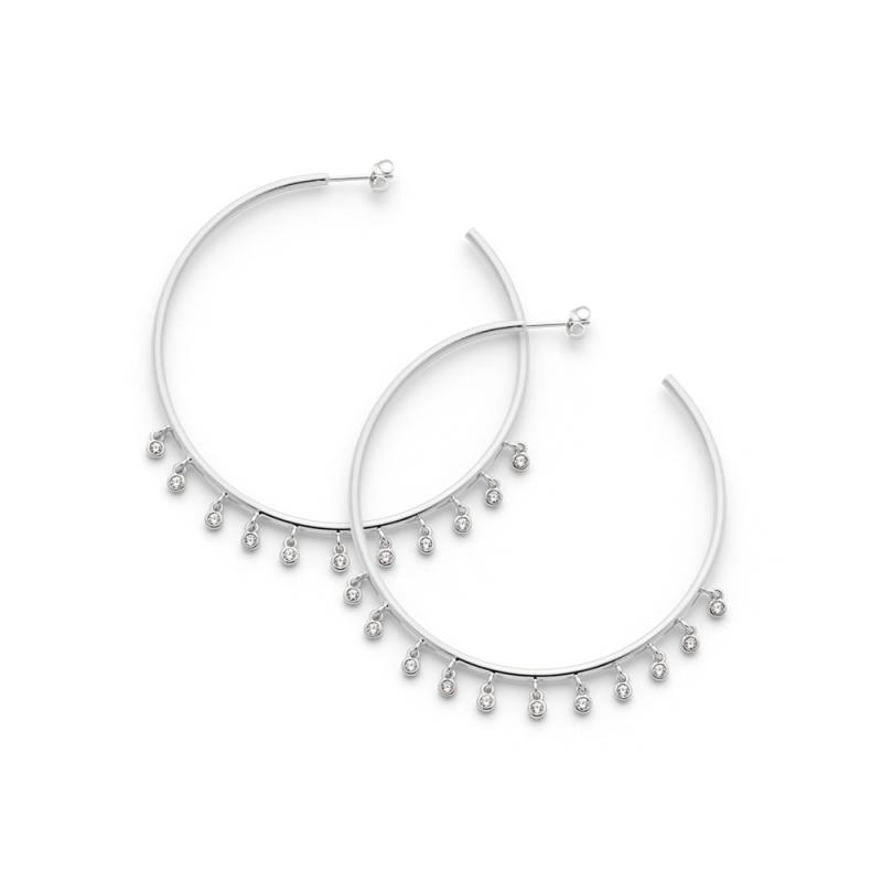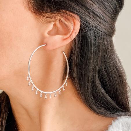 Créoles plaqué argent avec zirconias diamètre 58 mm