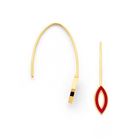 Couleur et gaieté caractérisent cette paire de boucles d'oreilles tout en longueur. Le fil rigide en acier jaune porte à son extrémité un motif en émail qui laisse penser à des lèvres maquillées d'un rouge à lèvre rouge vif. Cette paire de boucles d'oreilles de la collection Kiss est ultra féminine.