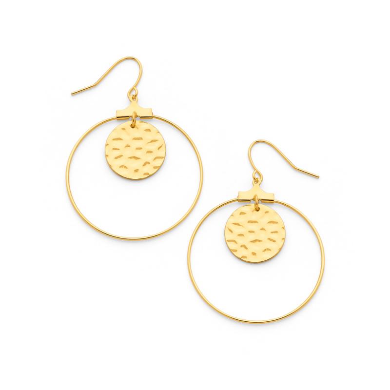 Boucles d'oreilles acier doré diamètre 35 mm