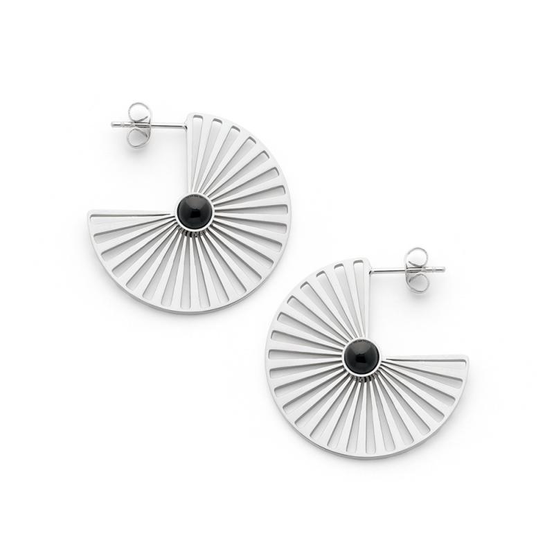 Boucles d'oreilles acier avec onyx diamètre 30 mm