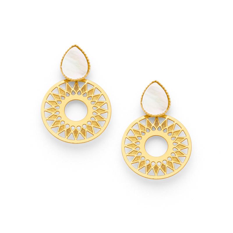 Boucles d'oreilles acier doré avec nacre