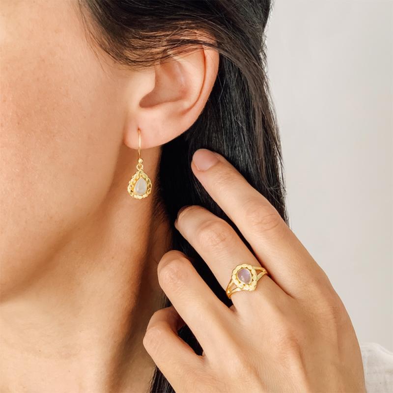Boucles d'oreilles dorées avec pierre de lune