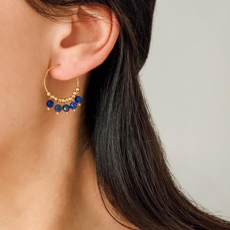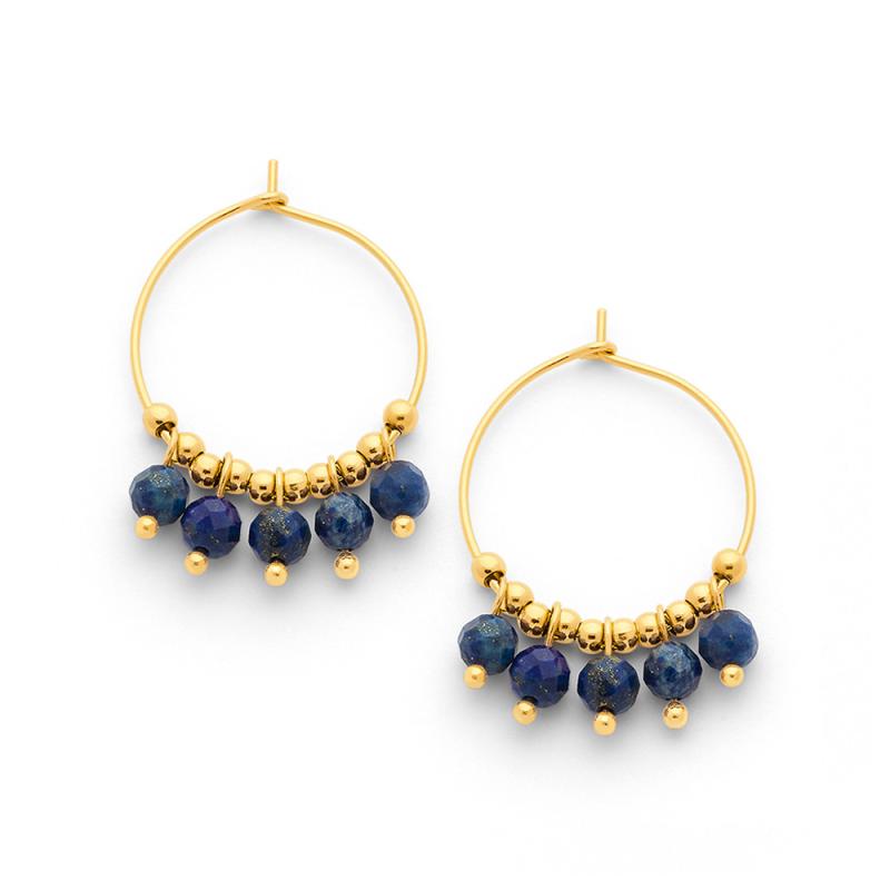 Créoles acier doré avec lapis-lazuli diamètre 20 mm