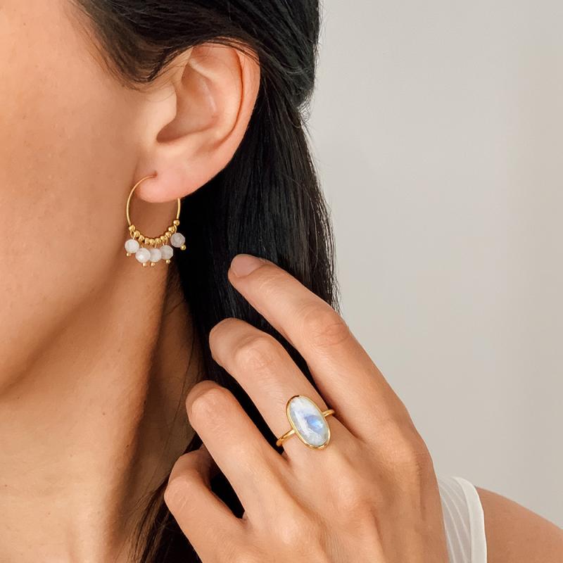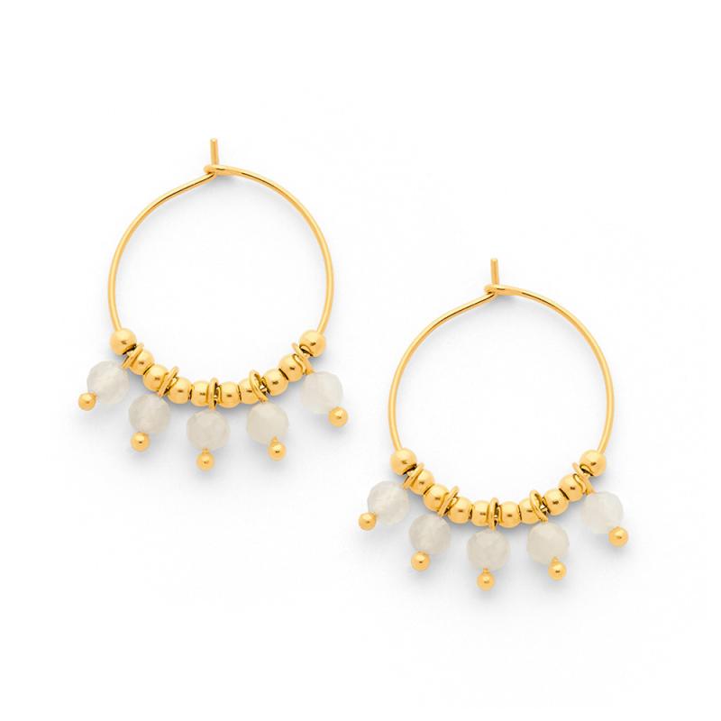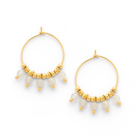 Créoles acier doré avec pierre de lune diamètre 20 mm