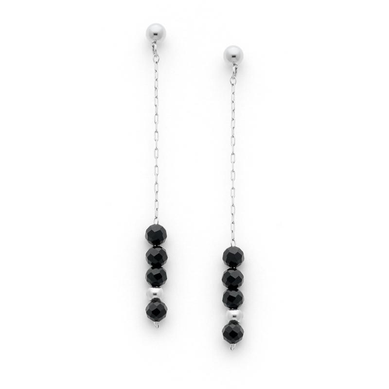Boucles d'oreilles acier avec agate noire