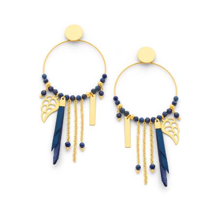 Boucles d'oreilles acier doré avec lapis-lazuli diamètre 35 mm