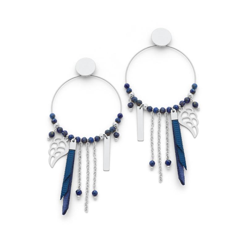 Boucles d'oreilles acier avec miyuki et lapis-lazuli diamètre 35 mm