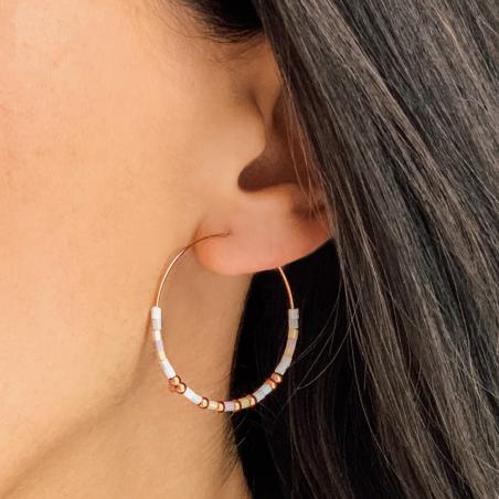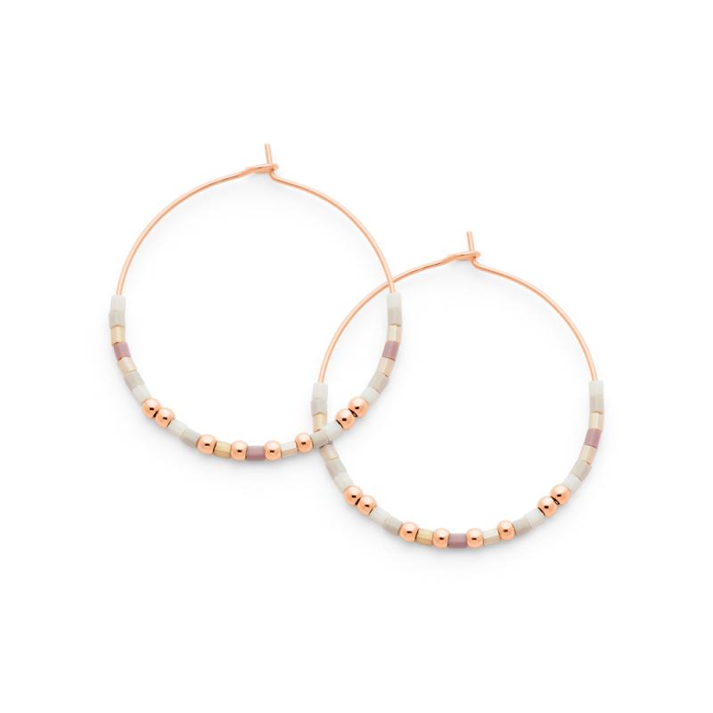 Crèoles acier rose avec miyuki diamètre 35 mm