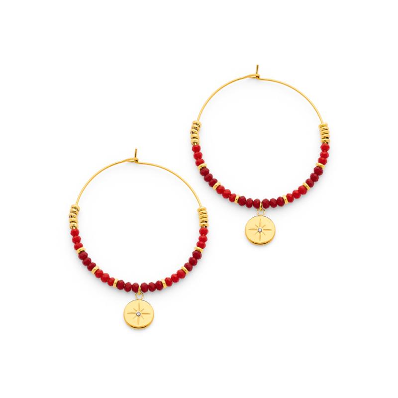 Créoles acier doré avec cristal diamètre 40 mm