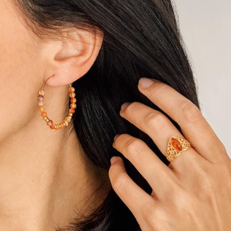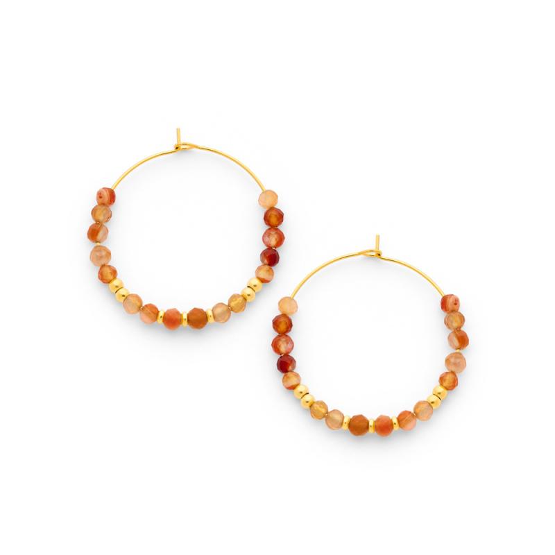 Créoles acier doré avec agate rouge diamètre 35 mm