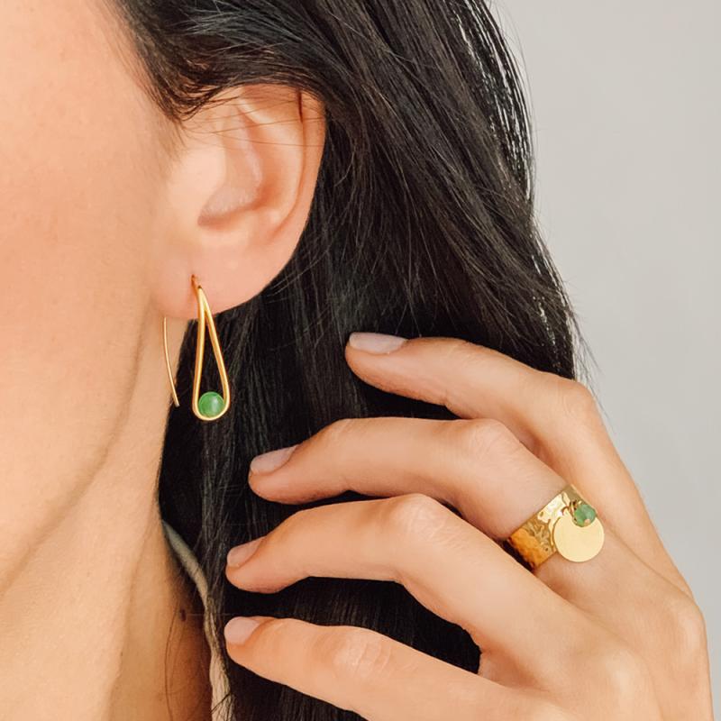 Boucles d'oreilles acier doré avec aventurine