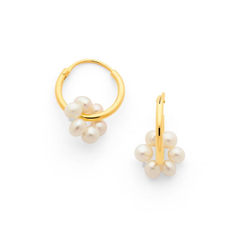 Créoles dorées avec perles de culture d'eau douce