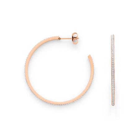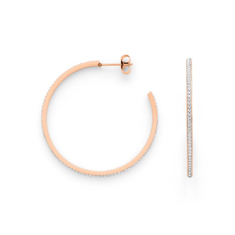 Créoles acier rose avec cristal diamètre 40 mm