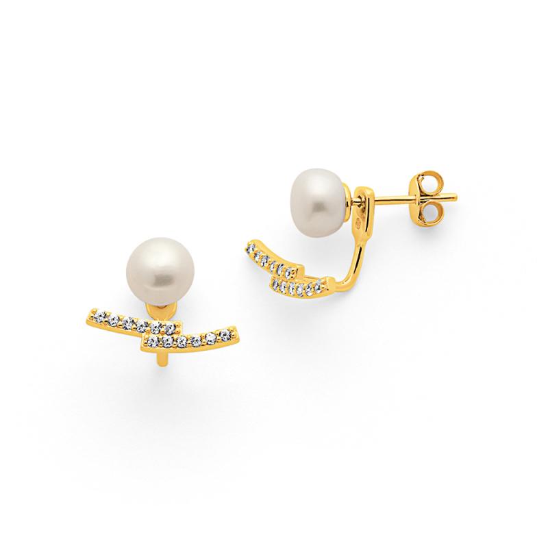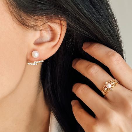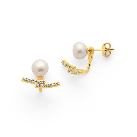 Boucles d'oreilles dorées perle de culture avec zirconia