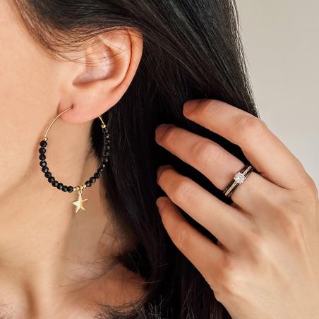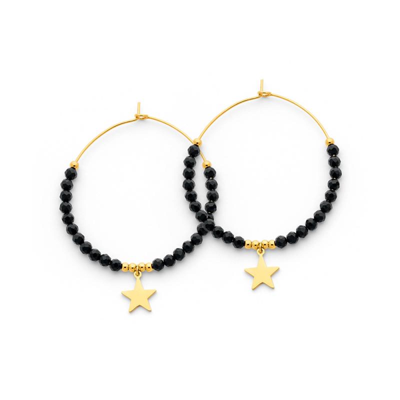 Créoles acier doré avec agate noire diamètre 40 mm