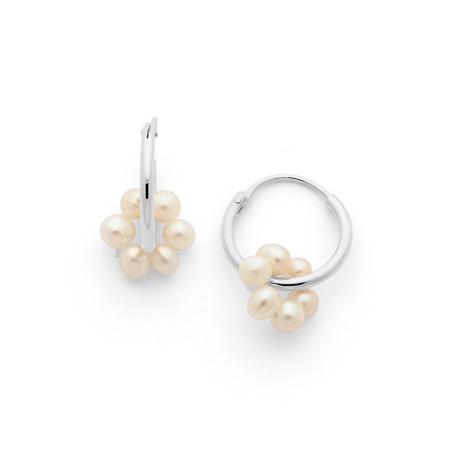 Créoles argent avec perles de culture d'eau douce