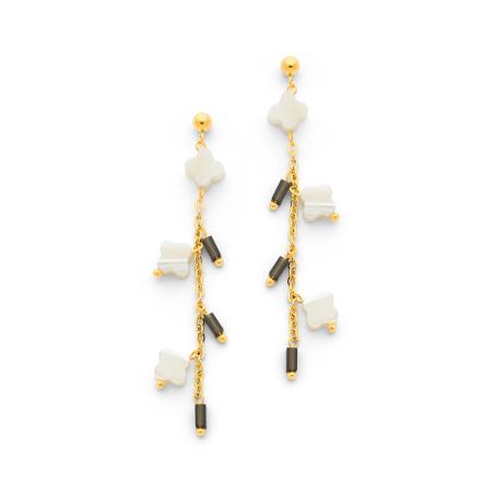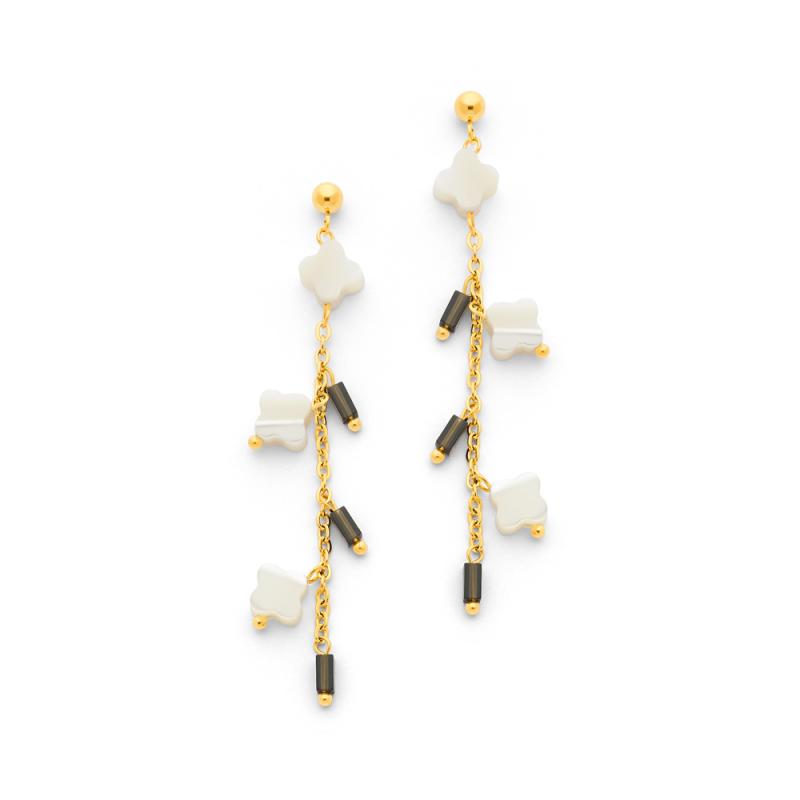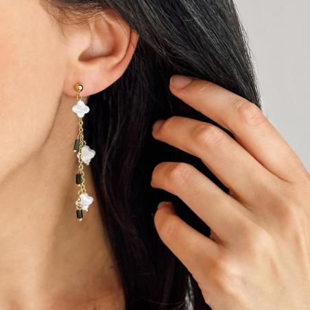 Boucles d'oreilles acier avec nacre et quartz fumé