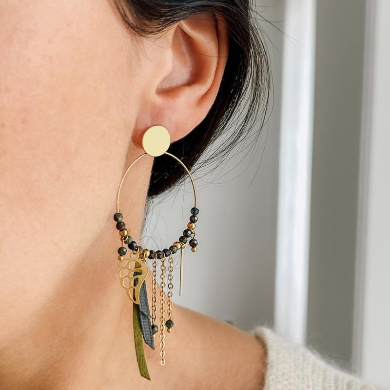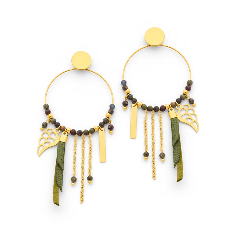 Boucles d'oreilles acier doré avec rubis zoïsite