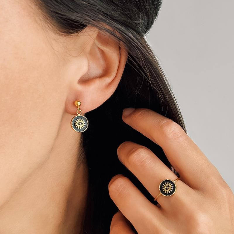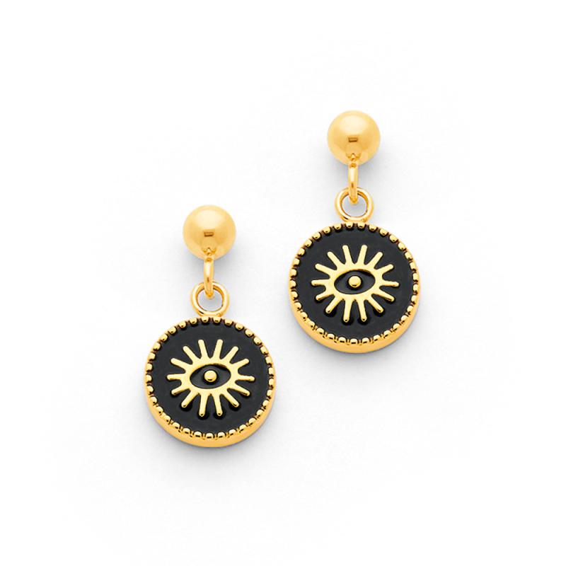 Boucles d'oreilles acier doré avec émail