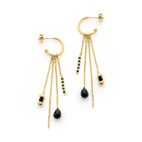Boucles d'oreilles acier doré avec miyuki, agate noir et hématite