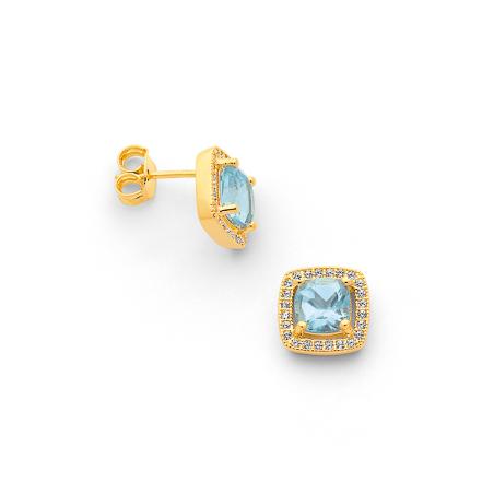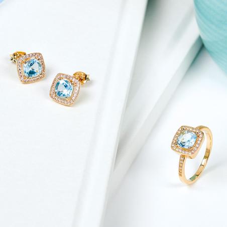 Boucles d'oreilles plaqué or avec topaze bleue et zirconias