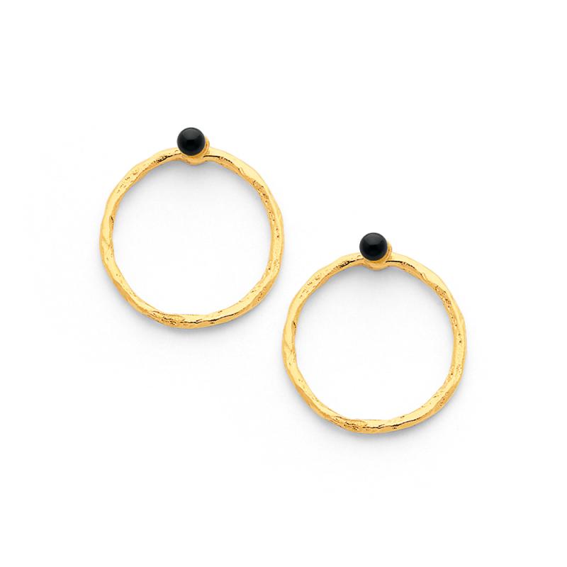 Boucles d'oreilles dorées avec agate noire