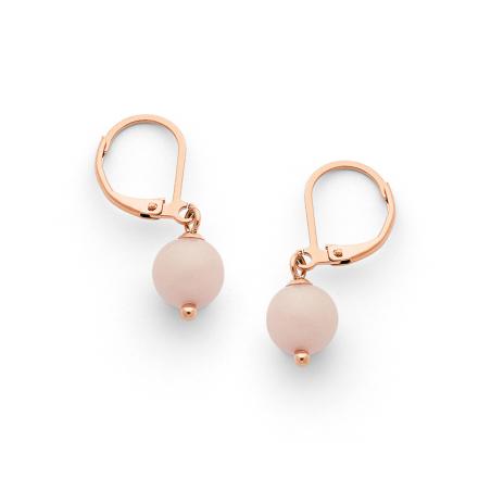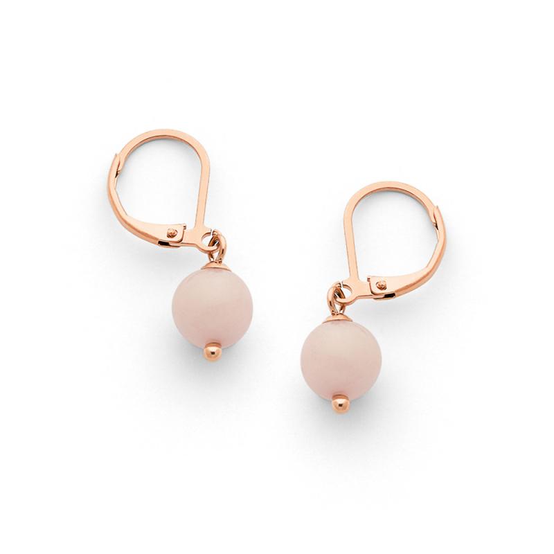 Boucles d'oreilles acier rose avec quartz rose
