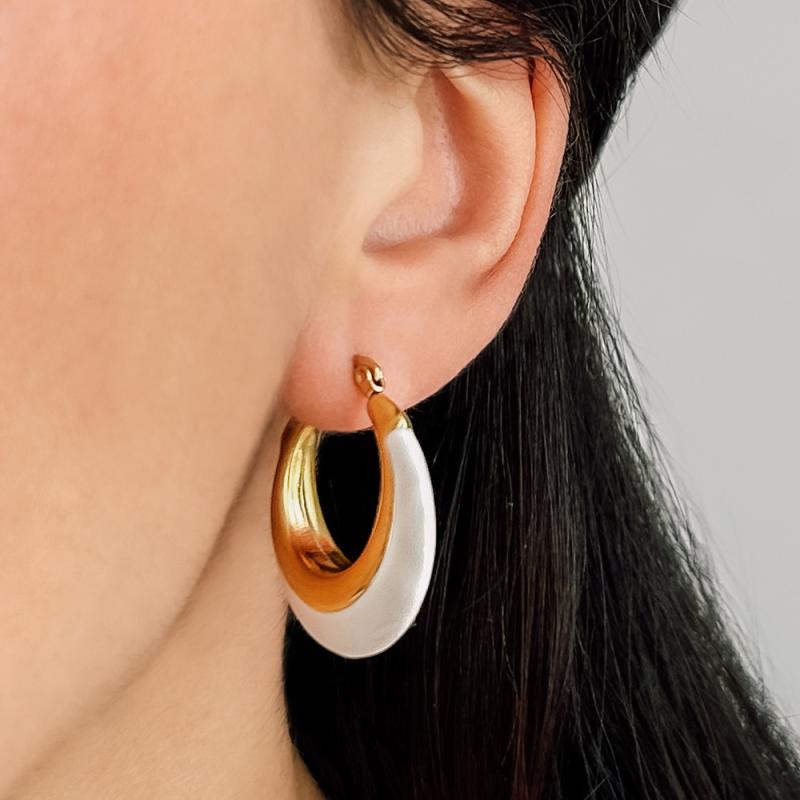 Créoles acier doré avec émail