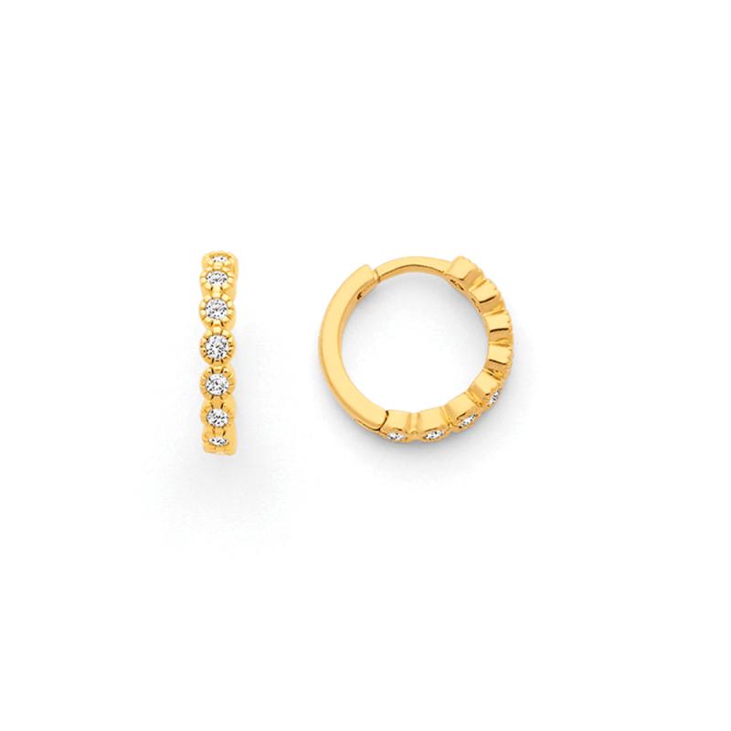 Créoles plaqué or avec zirconias diamètre 12 mm