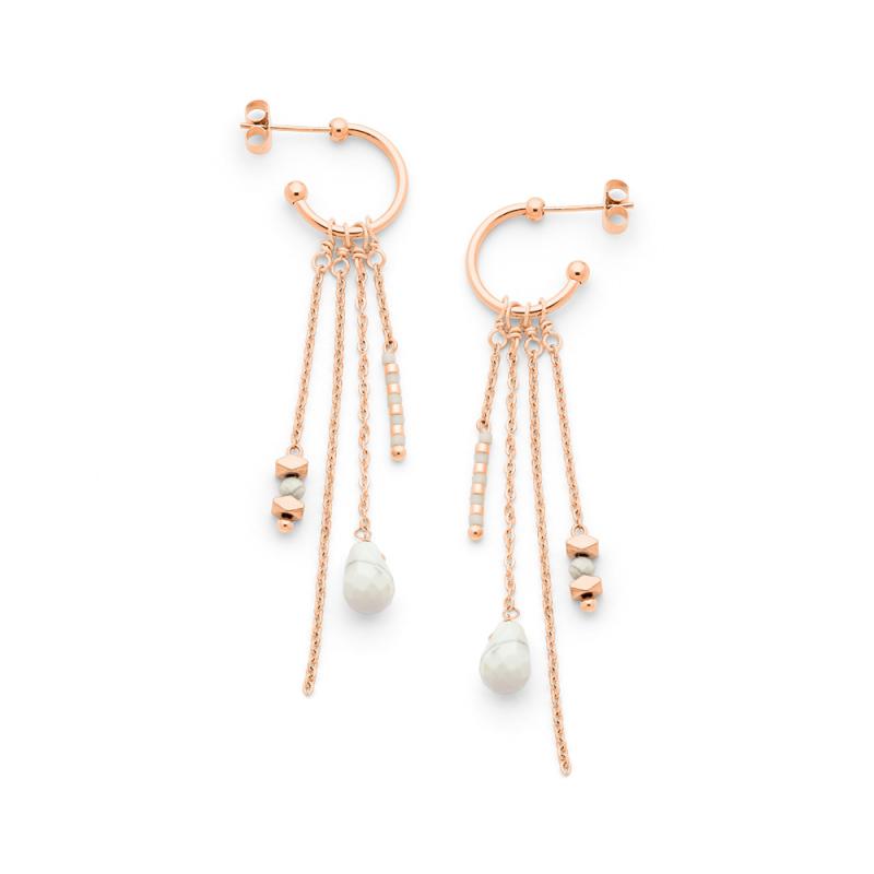 Boucles d'oreilles acier rose avec howlite et miyuki