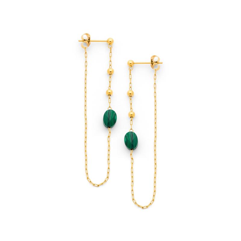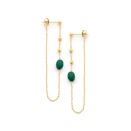 Boucles d'oreilles acier doré avec malachite reconstituée