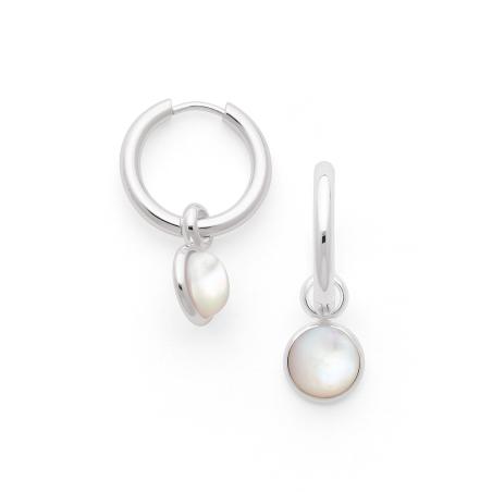 Créoles acier argenté avec nacre diamètre 17 mm