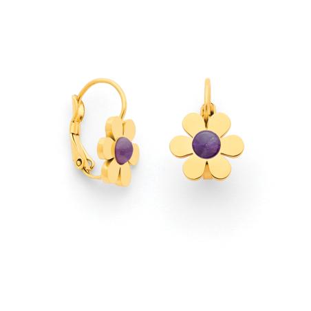 Dormeuses acier doré avec améthyste