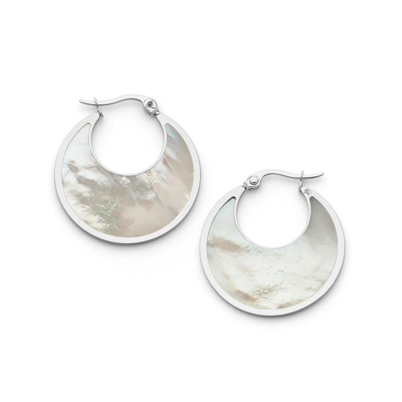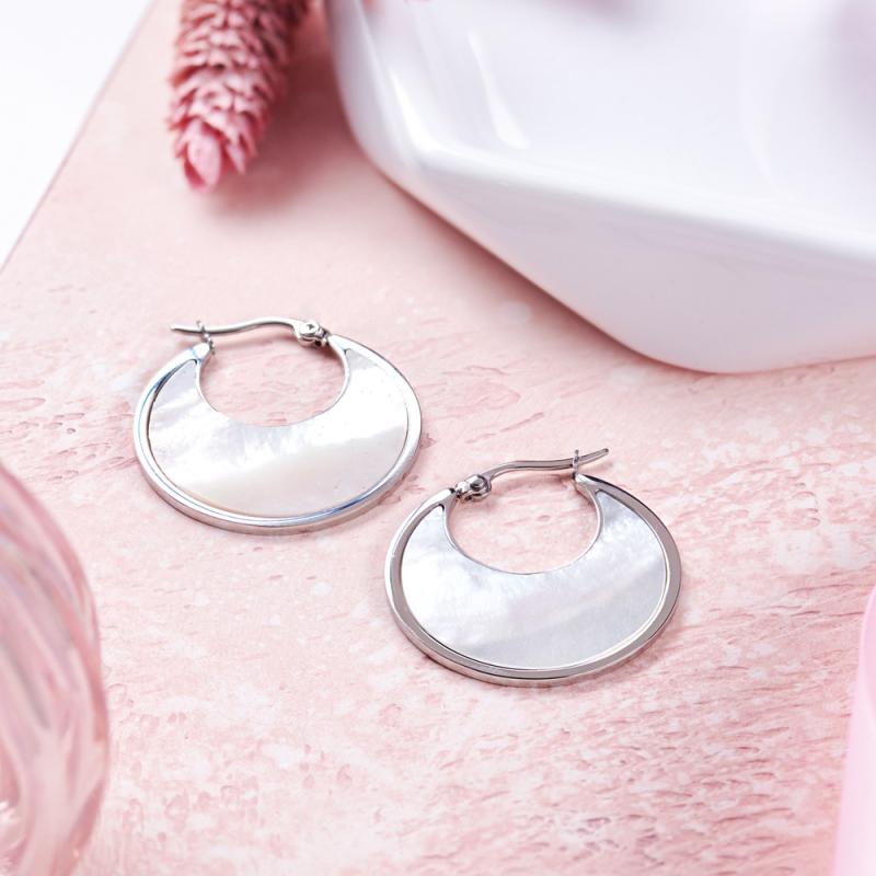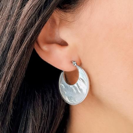 Créoles acier avec nacre diamètre 30 mm