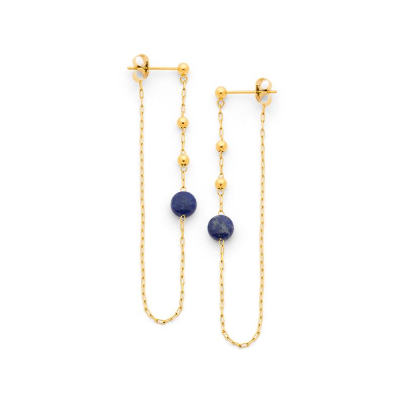 Boucles d'oreilles acier doré avec lapis-lazuli