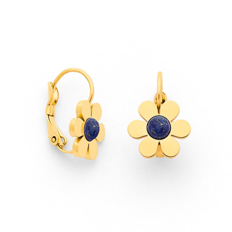Dormeuses acier doré avec lapis-lazuli