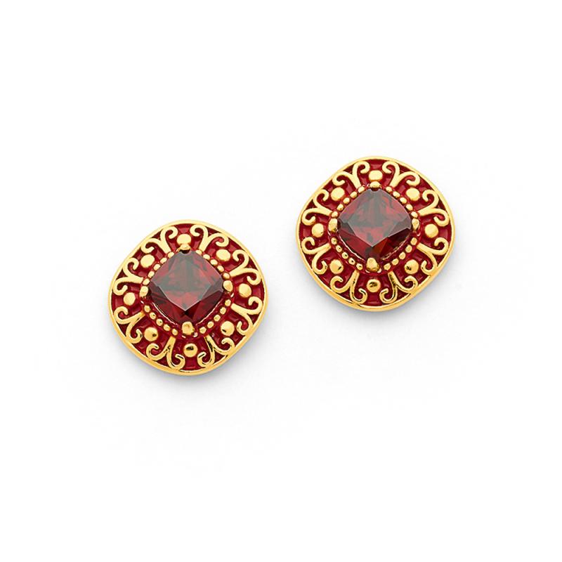 Boucles d'oreilles acier doré avec zirconias et émail