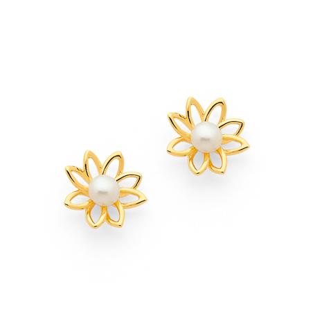 Boucles d'oreilles dorées avec perles de culture d'eau douce