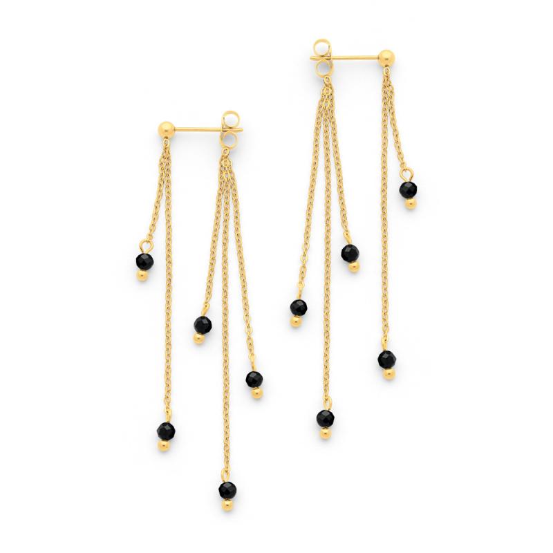 Boucles d'oreilles acier doré avec agate noire