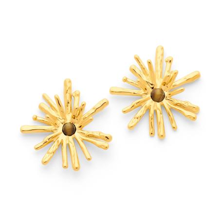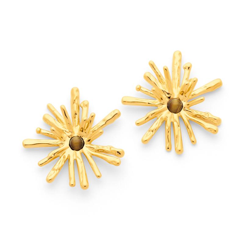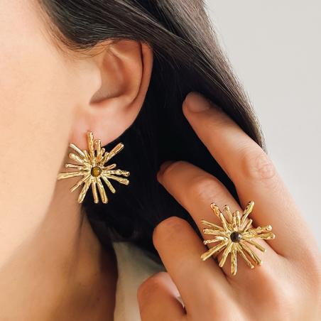 Boucles d'oreilles acier doré avec oeil de tigre